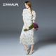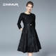 ZIMMUR2016新款提花连衣裙七分袖圆领收腰显瘦中裙欧美时尚绣花