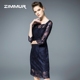 ZIMMUR2016春装新款女装圆领七分袖A字裙修身显瘦蕾丝拼接连衣裙