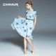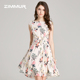 ZIMMUR2017年夏季新款印花气质鱼尾边优雅时尚短款连衣裙A字裙女
