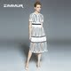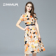 ZIMMUR2016夏装新款女装V领短袖中腰欧美时尚印花长裙连衣裙夏