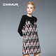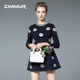 ZIMMUR2016欧美时尚印花连衣裙压花中裙精美提花圆领长袖连衣裙冬