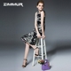 ZIMMUR2016秋装新款女装V领无袖欧美时尚外搭吊带印花连衣裙中裙