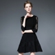ZIMMUR2016秋冬新款重工提花刺绣欧美长袖中腰圆领短款连衣裙