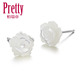 S925银贝壳玫瑰花纯银耳钉耳环女韩国甜美可爱气质花朵饰品防过敏
