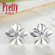 防过敏花朵S925纯银镶钻耳钉女耳环气质韩国清新情人节礼物送女友