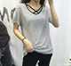 2017春夏新款韩国m2w.d时尚百搭韩风印花V领镂空显瘦挂脖T恤衫女