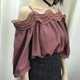 夏装新feiding非町韩范时尚吊带露肩一字领钩花宽松五分袖衬衫女