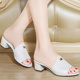 凉拖鞋中跟女夏2017新款时尚室外韩版百搭真皮女鞋粗跟一字拖凉鞋