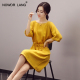 2017春季新款文艺范印花百搭连衣裙长袖中长款简约修身显瘦裙子