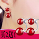 宋慧乔同款珍珠耳环925纯银红色耳钉女气质韩国樱桃红珍珠耳环
