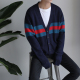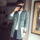 靓仔2017春装条纹牛仔衬衣男士潮流印花长袖衬衫薄款抽绳牛仔外套