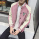 日系小清新男士水洗全棉牛仔夹克春季青少年粉色短款牛仔外套男潮