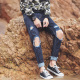 2017春夏新款 散口毛边 膝盖大破洞乞丐裤 牛仔九分裤潮