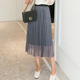2017春装网纱百褶半身裙黑色中长款高腰显瘦大摆蓬蓬裙女