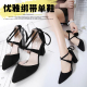 2017春季新款韩版女鞋尖头鞋浅口单鞋女粗跟交叉绑带中跟高跟鞋潮