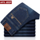 Afs Jeep秋季牛仔裤男装中腰直筒大码休闲牛仔长裤青年商务裤子男