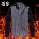 罗蒙男士保暖衬衫商务休闲磨毛羽绒衬衣加绒加厚冬季纯棉格子长袖
