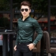 光滑料长袖衬衣男韩版时尚短袖衬衫潮流修身刺绣字母半截袖衬衫男