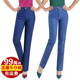 2017春装新款中老年牛仔裤高腰女裤大码直筒裤松紧腰长裤妈妈裤子