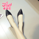 卓诗尼2017春夏季新款一字扣韩版百搭中跟粗跟浅口尖头单鞋女凉鞋