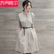 衬衫A字裙女中长款纯色立领裙摆式连衣裙收腰春夏新款薄纯色休闲