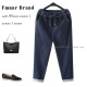 品牌单 掌柜推荐自留!外贸原单女装松紧腰抽绳宽松九分牛仔哈伦裤