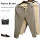 外贸原单女装小清新棉麻文艺竖条纹宽松紧腰抽绳九分裤亚麻休闲裤