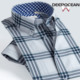 深海夏季薄款格子男士短袖衬衫纯棉韩版时尚休闲男装青年修身衬衣