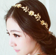 厂家饰品新款百搭超仙款 闪钻花朵金色叶片发饰头带新娘发带