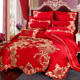 雅牧全棉婚庆四件套大红色结婚床上用品龙凤婚庆床品六十多件套