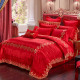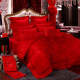 雅牧欧式大提花大红蕾丝刺绣婚庆四件套结婚床上用品六八十多件套