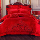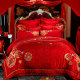 雅牧全棉贡缎刺绣大红色婚庆四件套新婚结婚床上用品六八十多件套