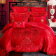 雅牧贡缎结婚绣花床上用品 婚庆四件套大红色新婚六件套十多件套