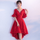 伴娘服短款晚礼服2017新款春季主持人礼服中袖短裙女新娘敬酒服