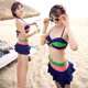俊飞包邮女士分体 性感比基尼泳衣 小胸聚拢彩虹裙式温泉游泳衣