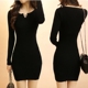 2015秋冬装新款女长袖小V领针织连衣裙修身包臀打底中长款毛衣裙