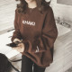 韩国大东门冬季韩版字母印花宽松中长款卫衣加绒加厚外套头女学生