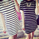 韩版夏季连衣裙中长款修身条纹短袖女t恤夏打底衫半袖上衣体恤