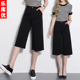 乐库优抗皱夏新品七分裤直筒裤休闲裤黑色高腰阔腿裤女裤子宽裤腿