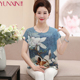 中老年女装40-50岁妈妈装夏装中年t恤短袖上衣大码民族风雪纺衫