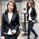 2017春季新款长袖小外套修身显瘦pu皮短款皮衣女一粒扣西装领夹克