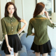 韩范清新百搭纯色宽松短款女装衬衣七分袖拼接亮片休闲衬衫外套潮