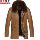 中年男冬季毛领皮衣加绒加厚皮夹克 中老年男装商务PU皮爸爸外套