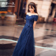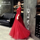 宴会晚礼服2017新款长款一字肩学生优雅主持人女性感伴娘服公主夏