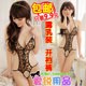 包邮!情趣内衣诱惑开裆套装透明露乳开档女式性感豹纹透视连体衣