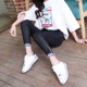牛仔裤女九分裤百搭修身黑色小脚翻边卷边春夏9分显瘦中学生高腰