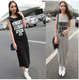 2017春夏新款韩版字母休闲运动裙长裙修身无袖连衣裙莫代尔女长裙
