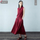ZENE夏季纯色无袖宽松棉麻连衣裙夏复古文艺范亚麻长裙女