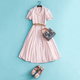 法国 优雅大圆摆 金色腰带 复古百褶中长款连衣裙