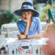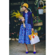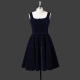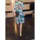 纽约轻奢蓝色印花复古优雅大伞摆中长无袖款客供挺括棉布连衣裙